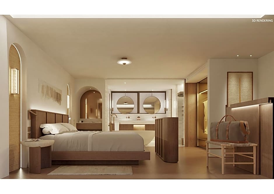 This spacious suite is consisted of of 1 living room, 1 separate bedroom and 1 bathroom with a shower and bathrobes. The suite offers soundproof walls, a mini-bar, a tea and coffee maker, a TV with streaming services, as well as sea views. The unit offers 1 bed.